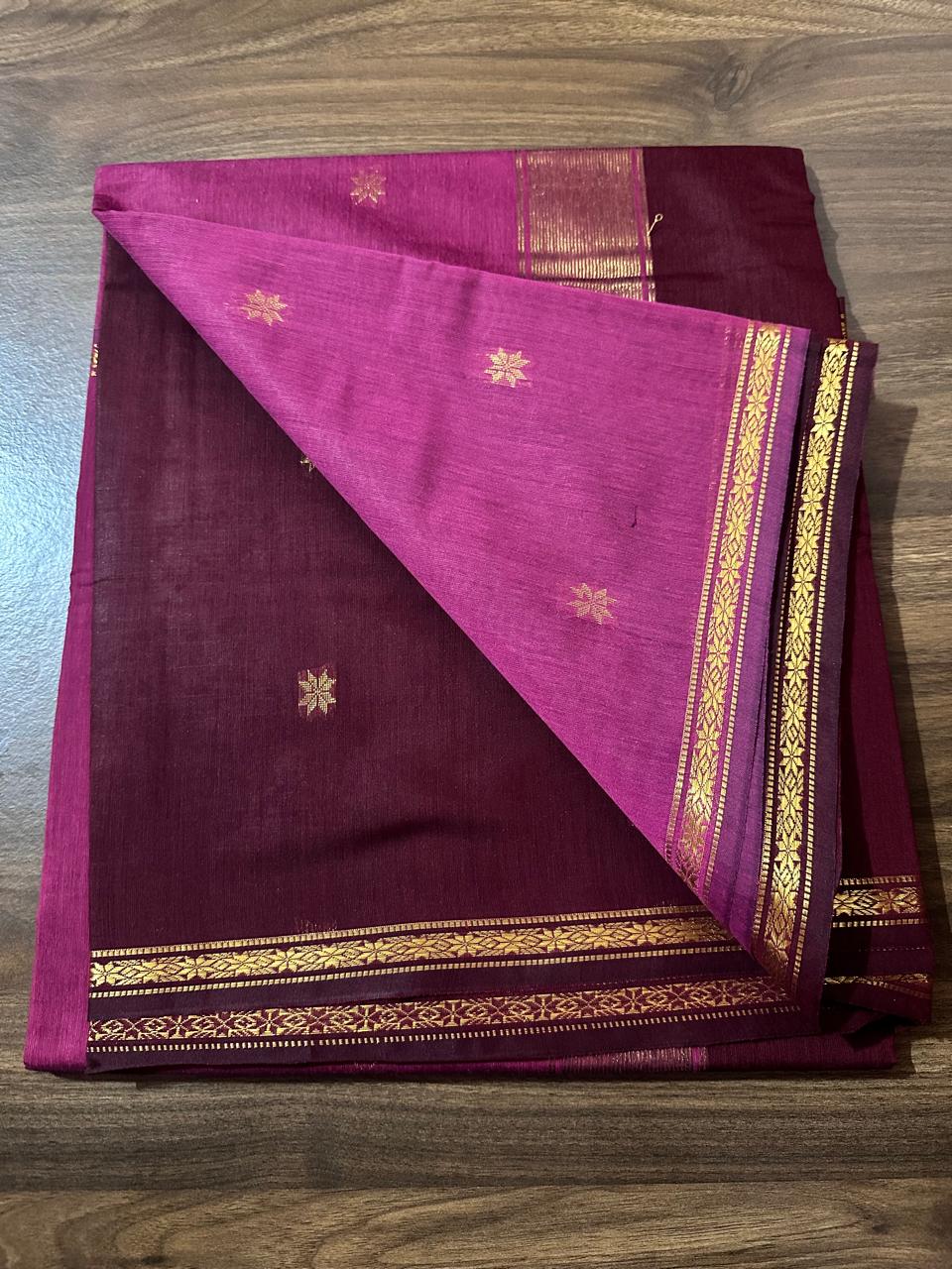 Luna Silk Cotton Saree - Wine Maroon & Magenta With Gold Zari