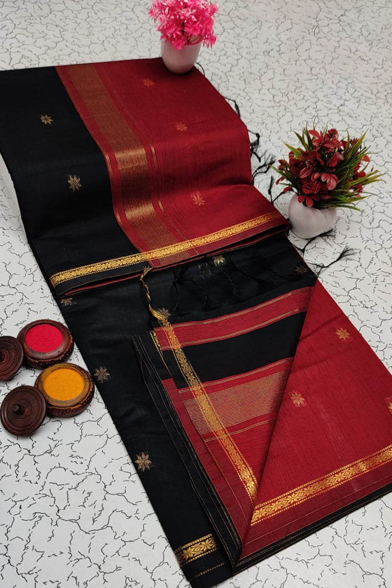 Luna Silk Cotton Sarees - LT22 Maroon & Black