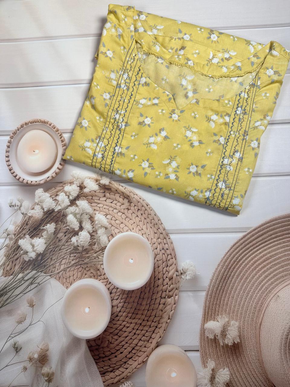 Embroidered square yoke enhancing the neckline