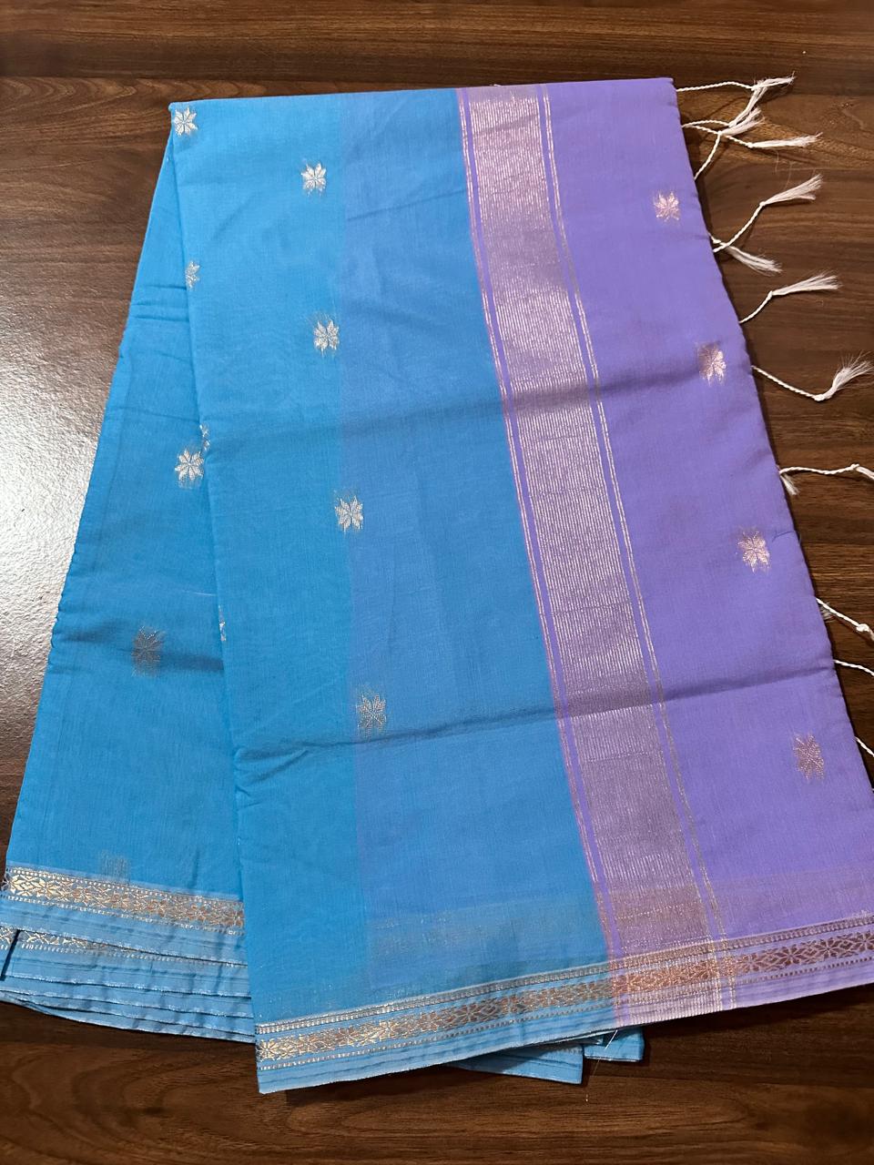 Luna Silk Cotton Saree - LTS65 Sky Blue & Light Lavender