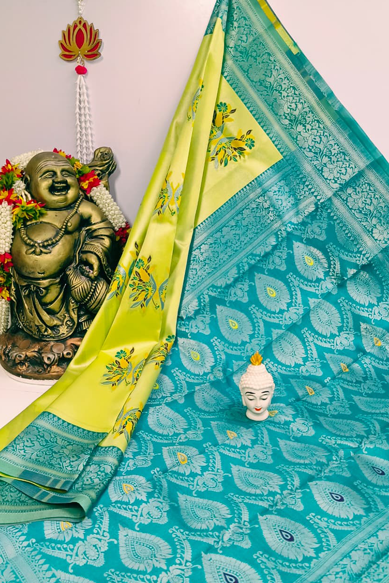 - Rich pallu with contrast blouse