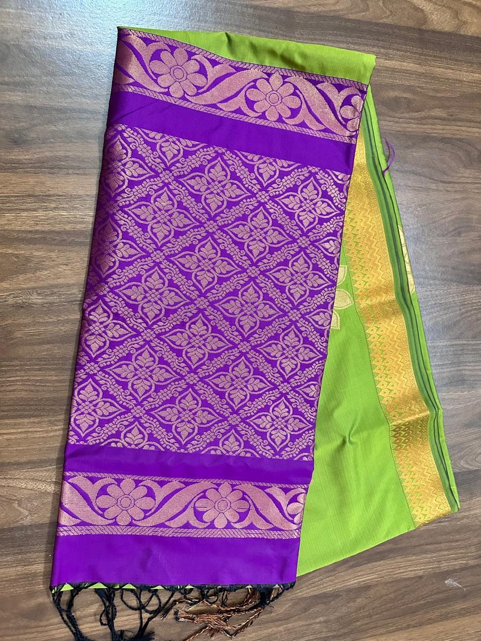 Fancy Soft Silk Bhutta Saree - LTS31 Magenta Pink & Parrot Green