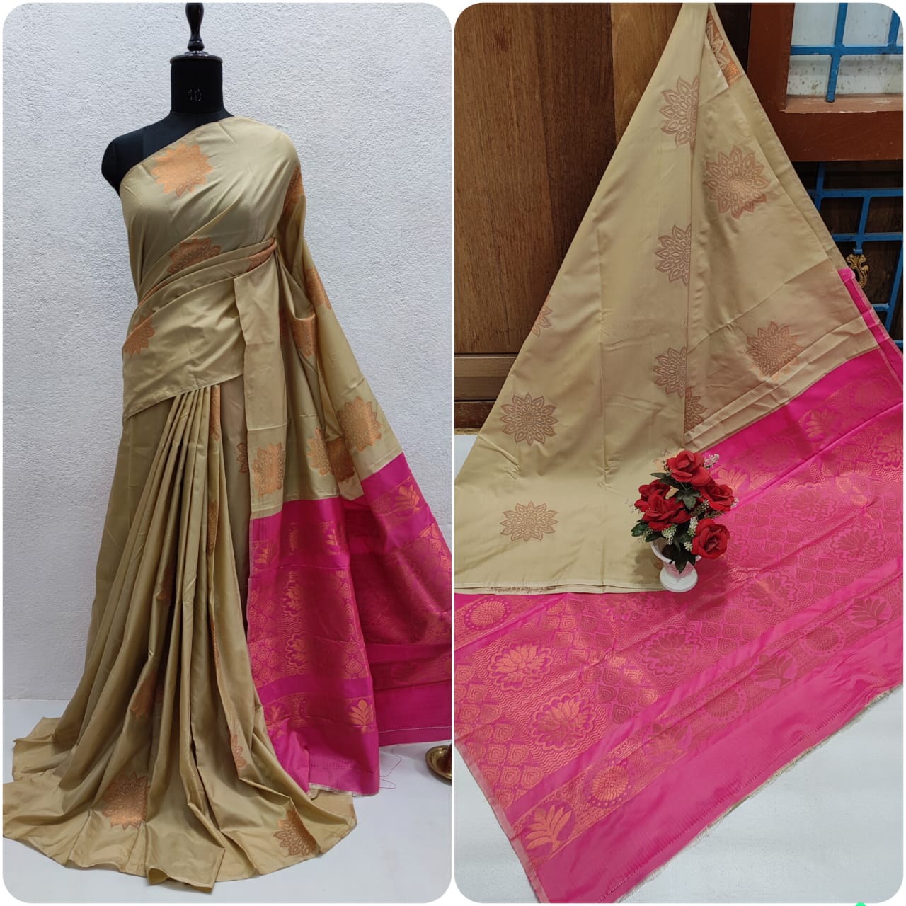 Fancy Soft Silk Butta Saree - Beige And Pink