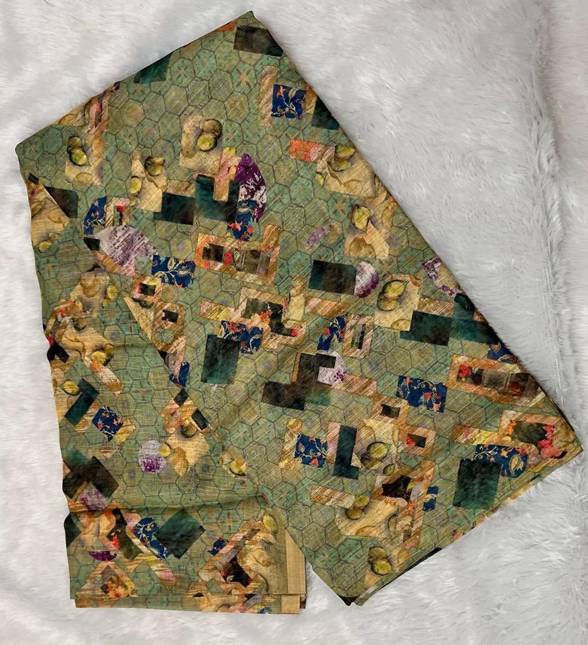 Handloom Floral Linen Soft Silk Cotton Saree - LTS113 Light Olive Green