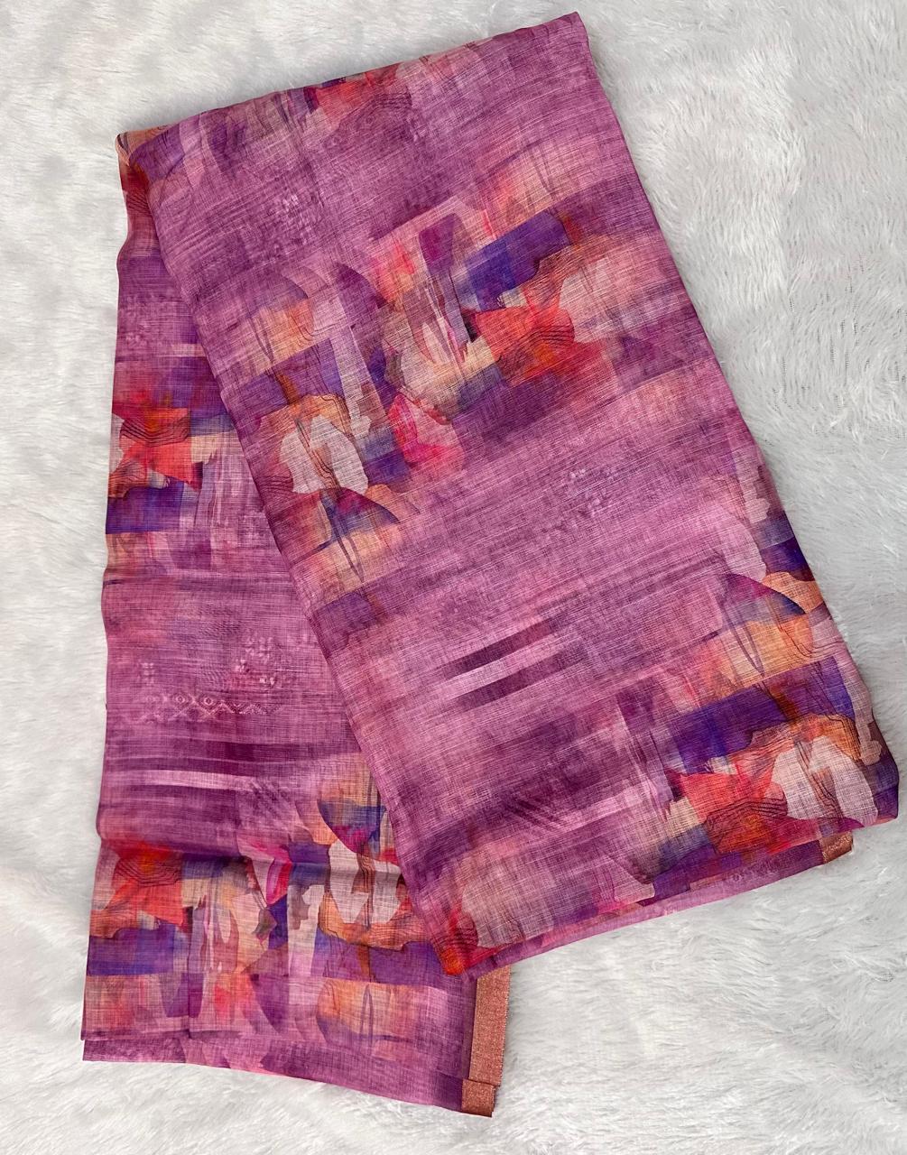 Handloom Floral Linen Soft Silk Cotton Saree - LTS110 Magenta Pink