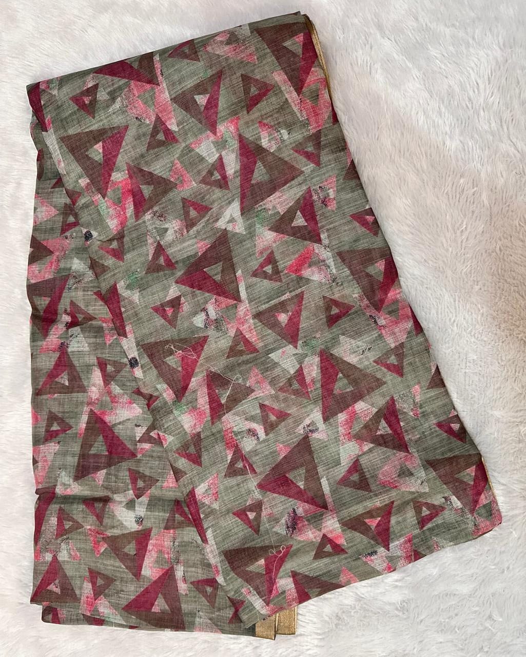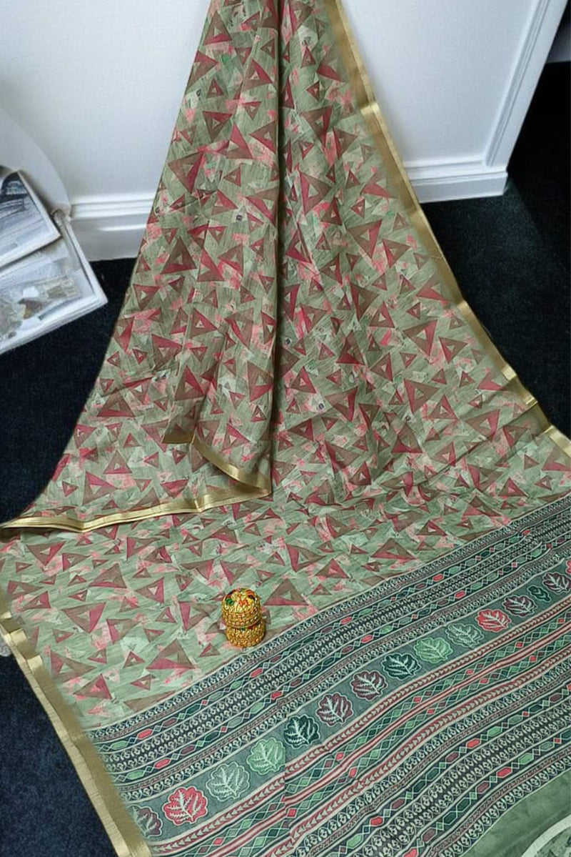 Handloom Floral Linen Soft Silk Cotton Saree - LTS108 Moss Green