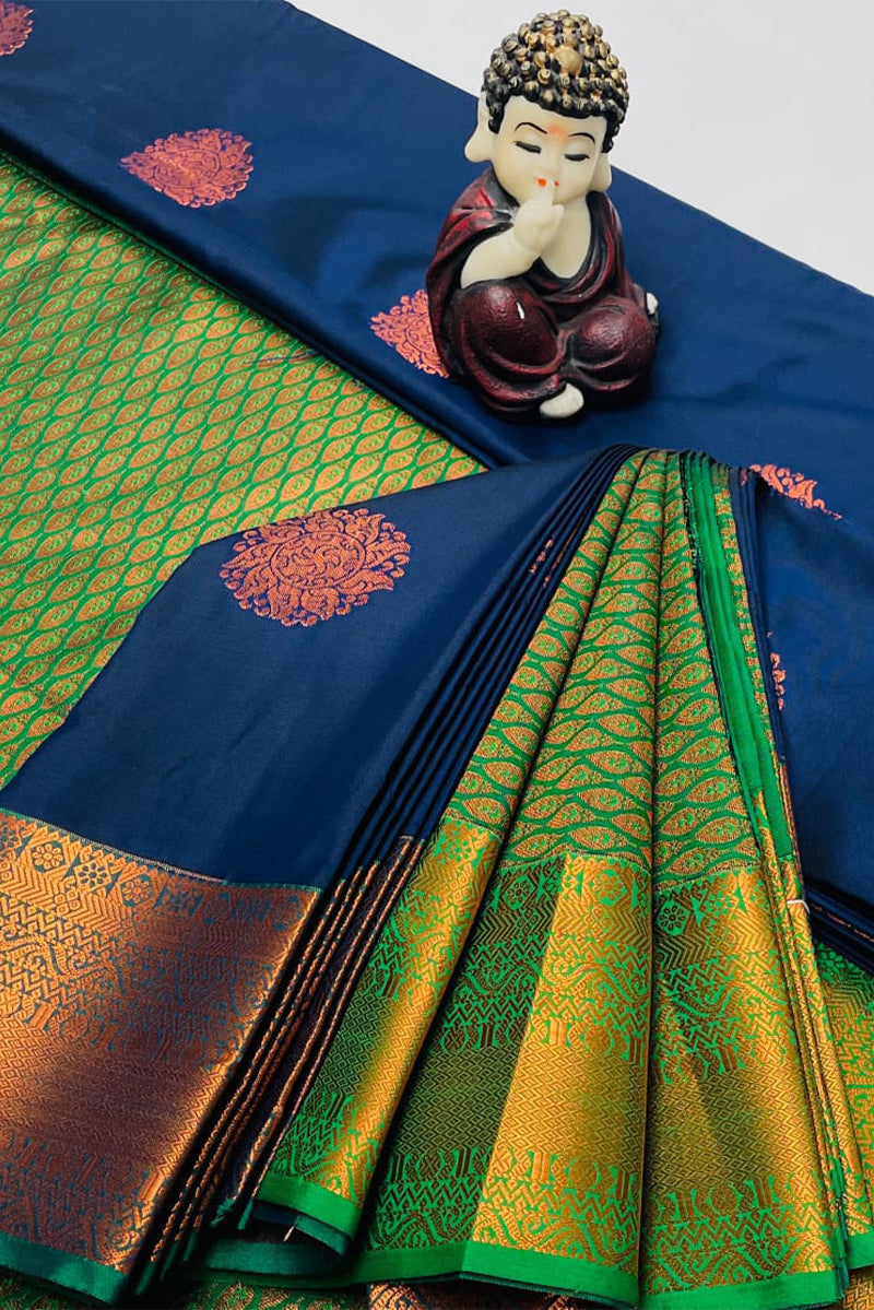 Kanchipuram Handloom Soft Silk Saree - LTS125 Blue & Green