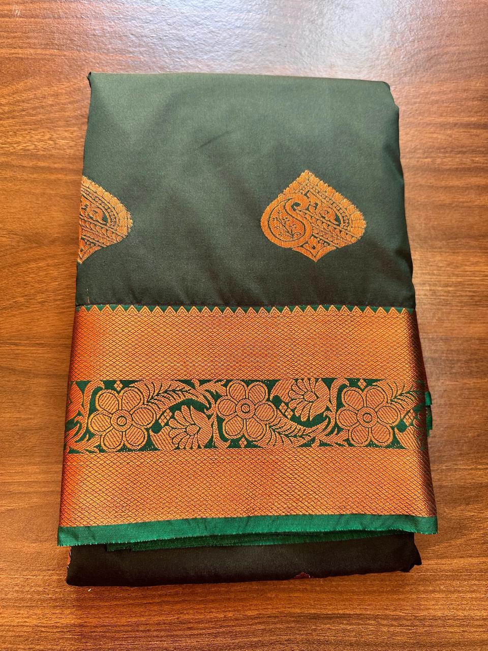Kanchipuram Handloom Soft Silk Saree - LTS117 Dark Green & Teal Green