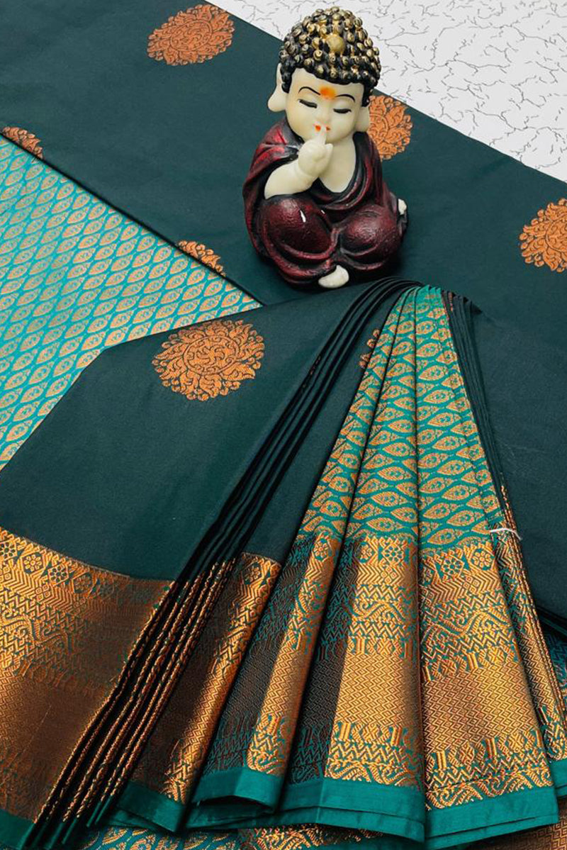 Kanchipuram Handloom Soft Silk Saree - LTS137 DarkGreen & Teal Green