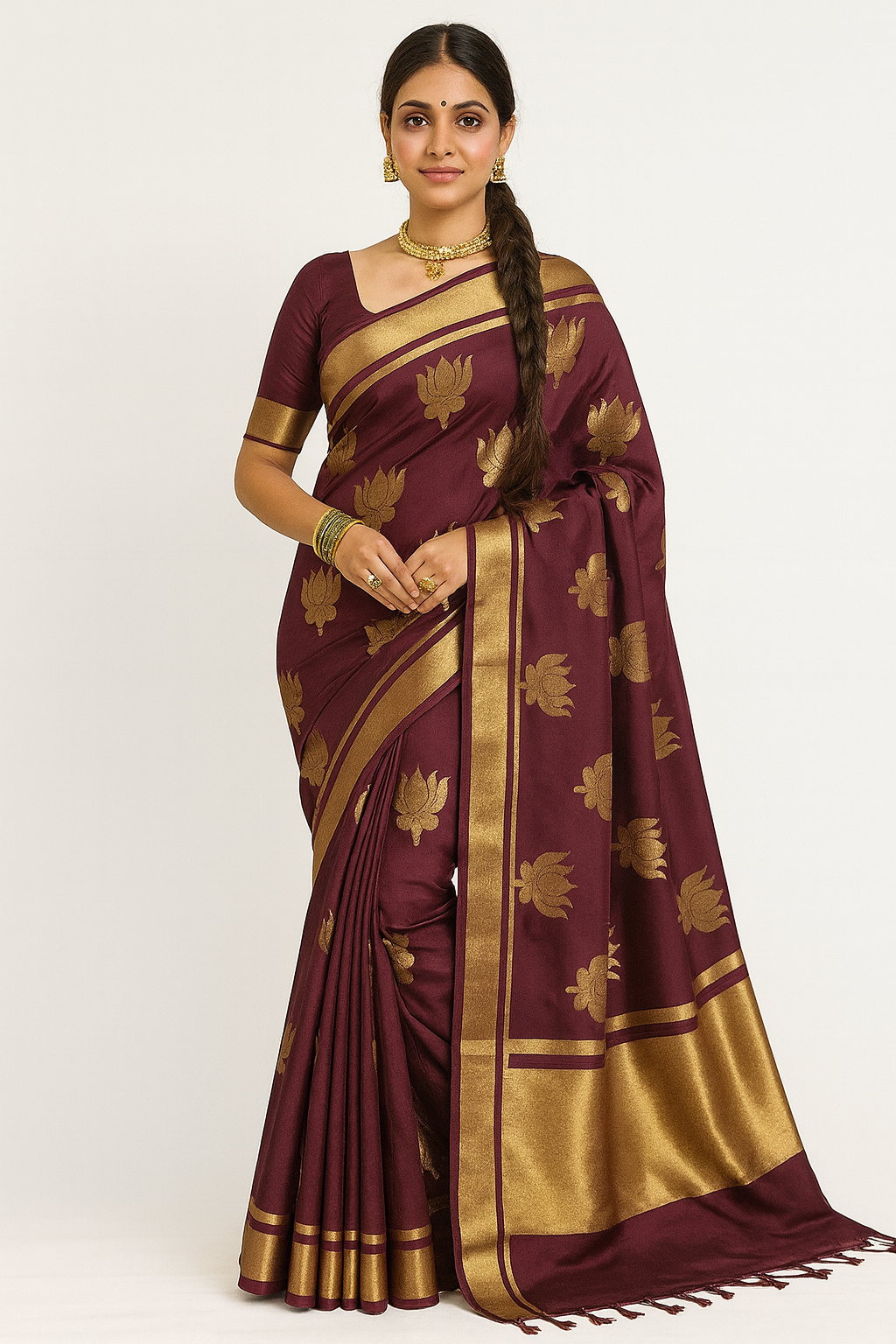 Lotus Glow Saree Deep Wine