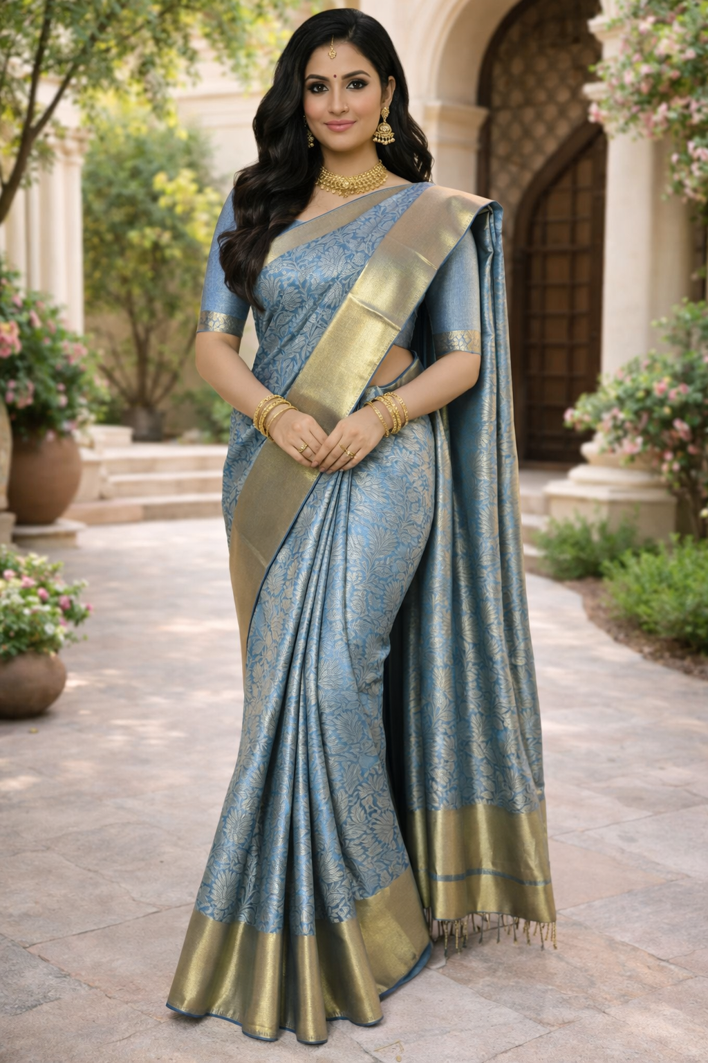 Luna Kanchipuram Tissue Silk Saree - LTS102 Blue