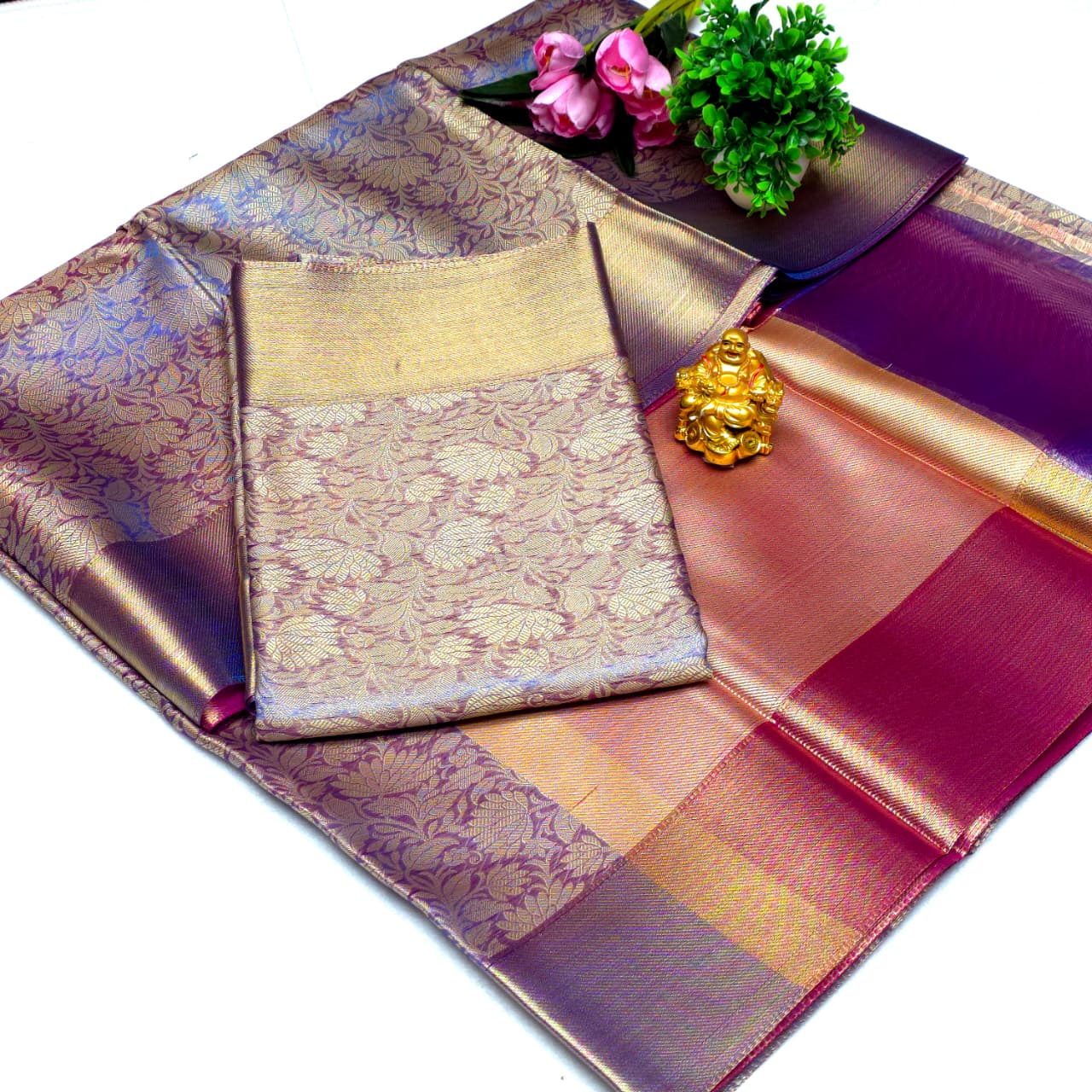 Luna Kanchipuram Tissue Silk Saree - LTS97 Reddish Brown