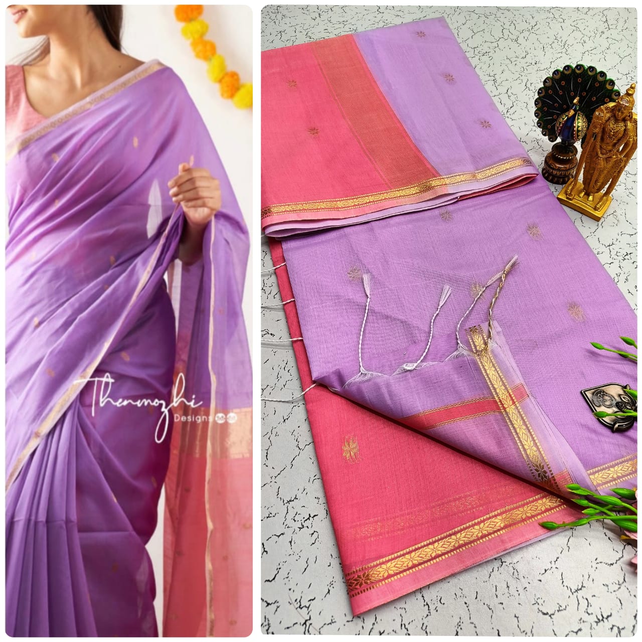 Luna Silk Cotton Saree - LTS60 Lavender & Pink