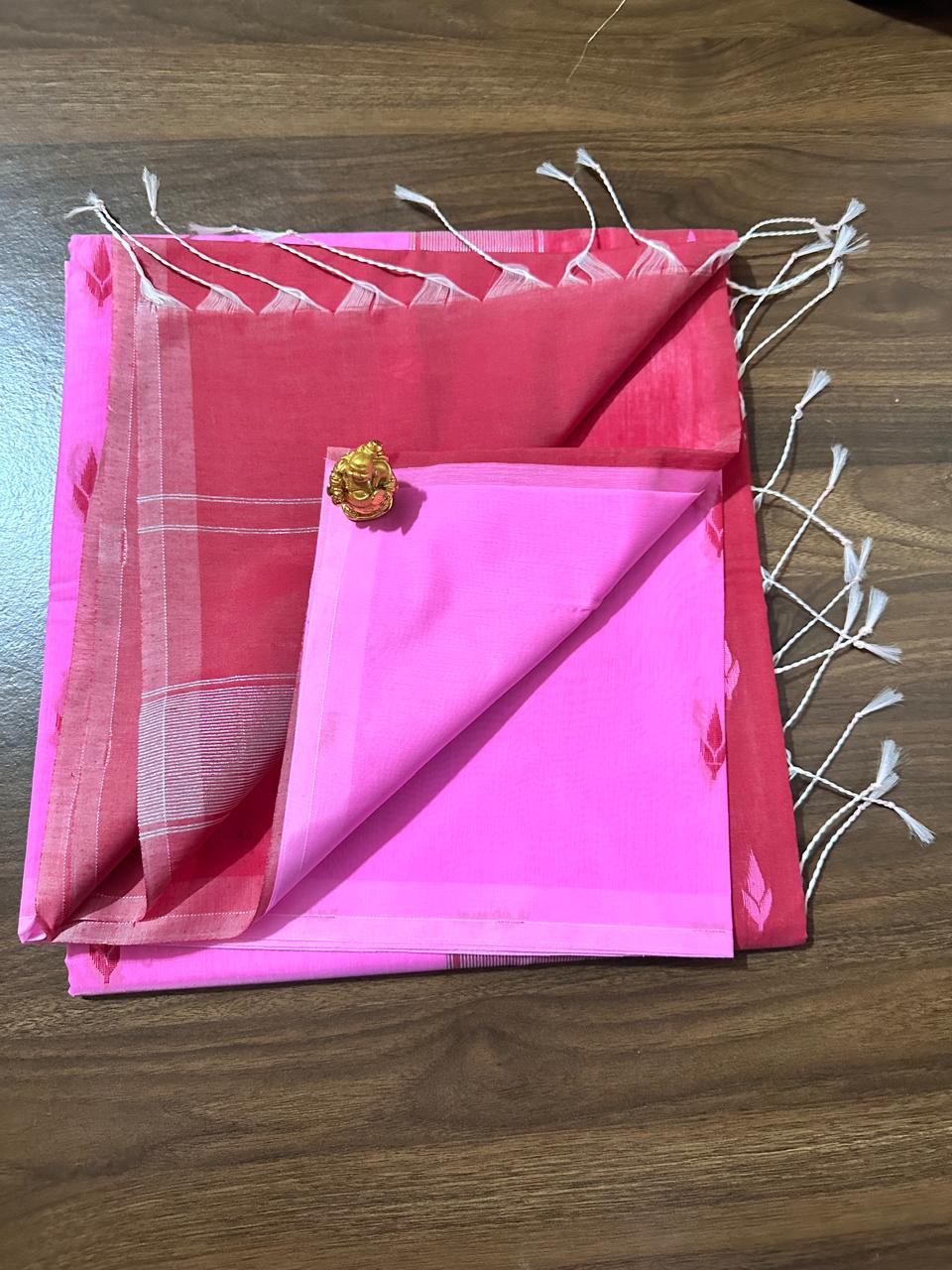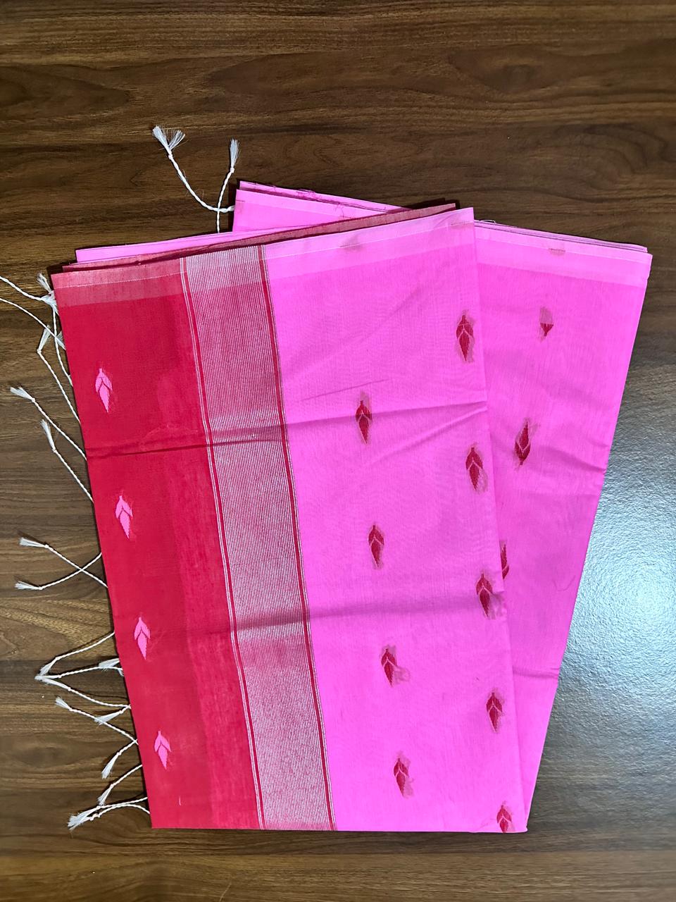 Luna Silk Cotton Saree - LTS166 Baby Pink & Red