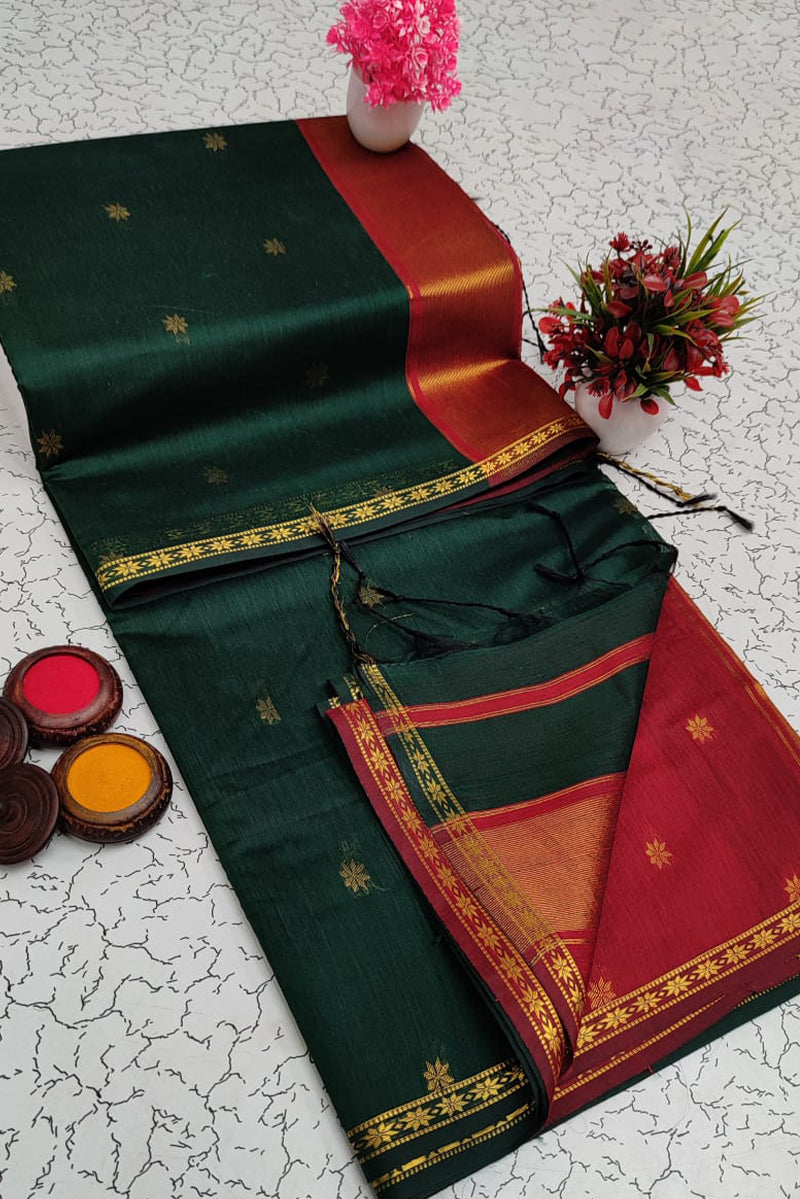 Luna Silk Cotton Sarees - LTS68 Green & Red