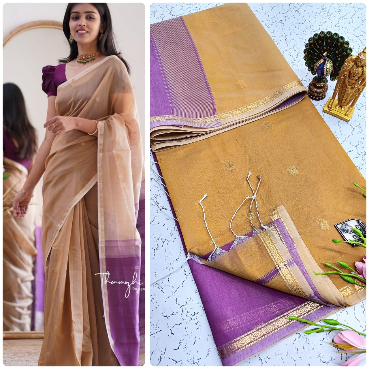 Luna Silk Cotton Sarees - LTS144 Light Brown & Plum