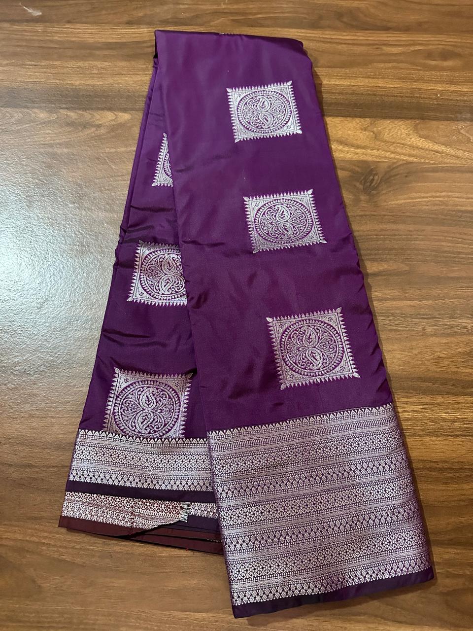 Fancy Soft Silk Bhutta Saree - Deep purple With Silver Zari