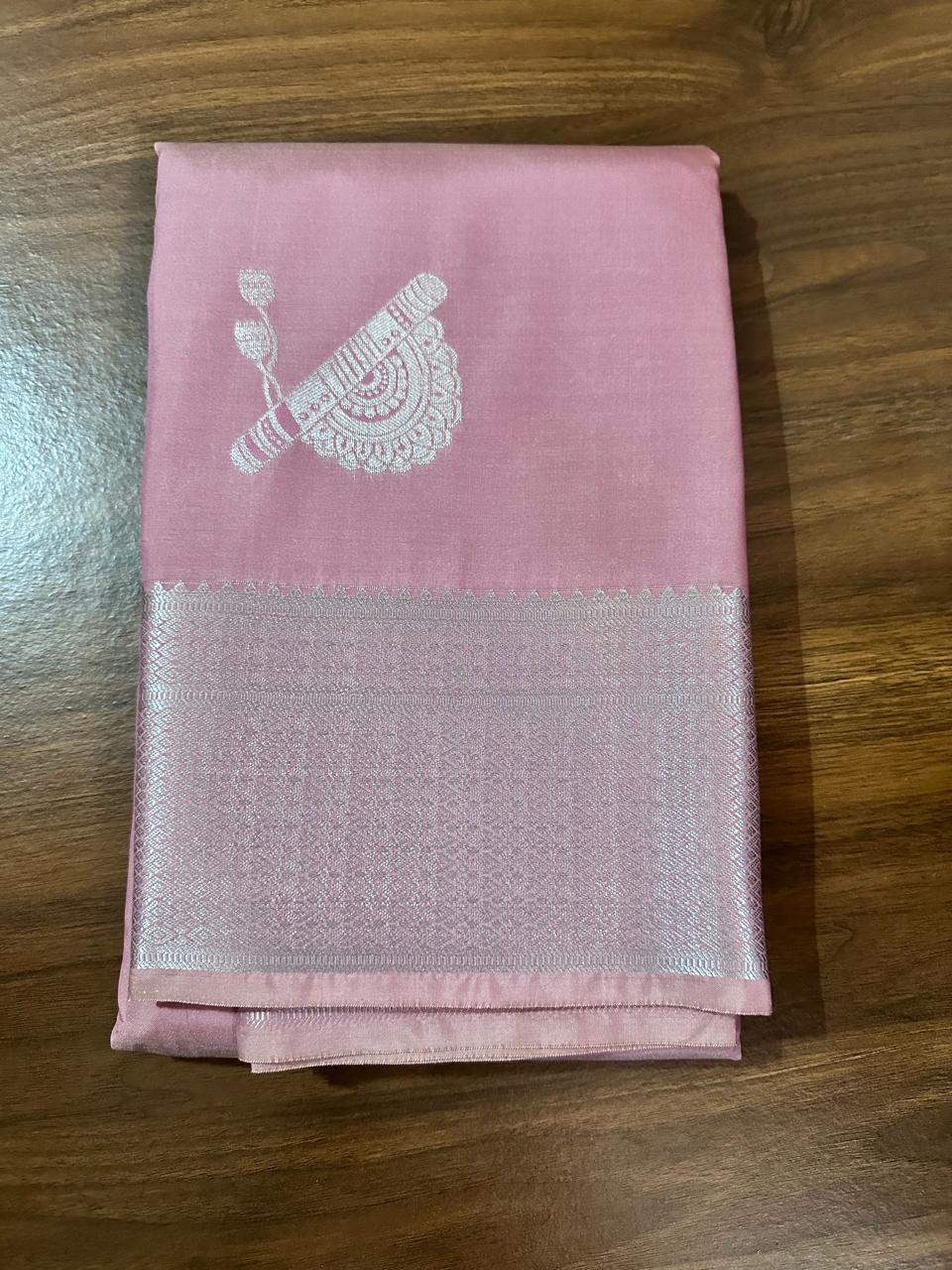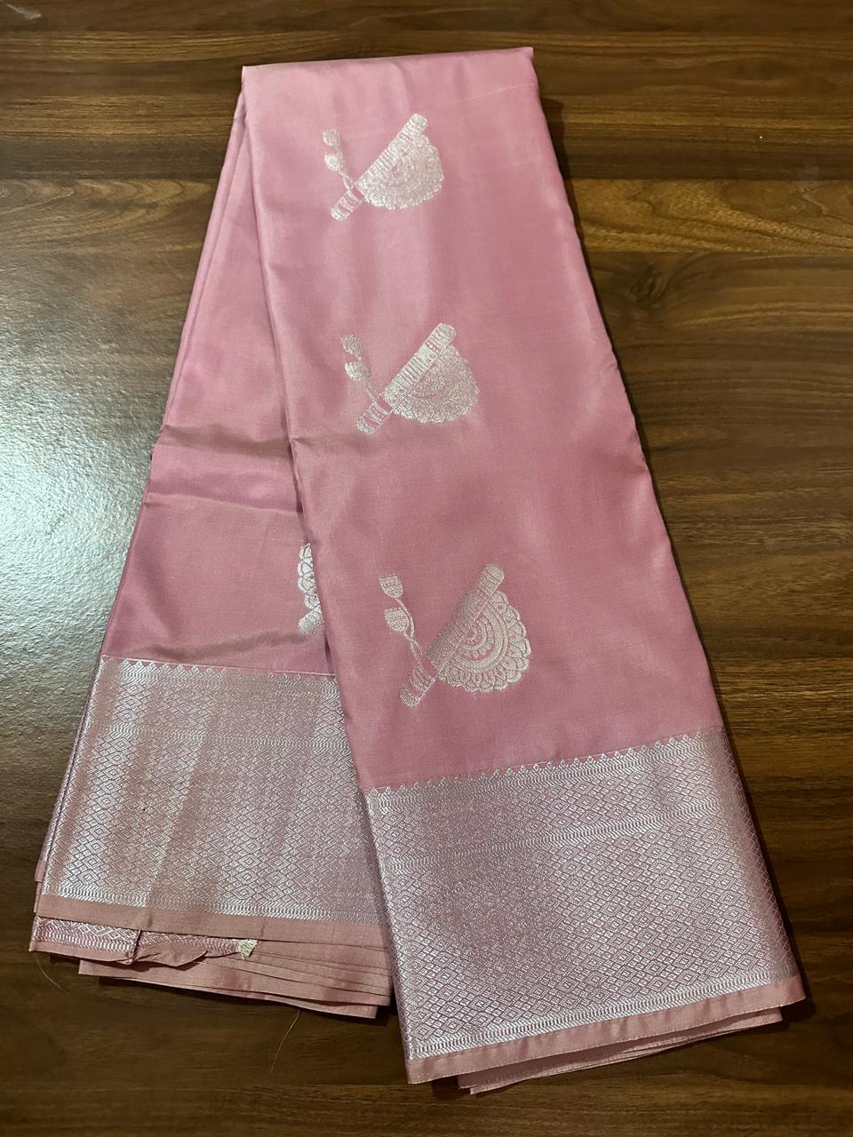 Fancy Soft Silk Bhutta Saree - Light Rose Pink With Silver Zari