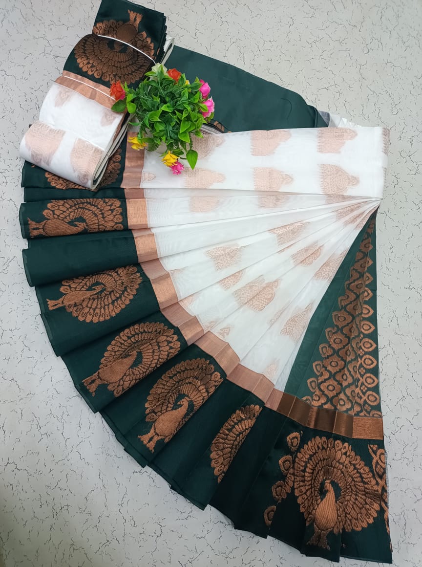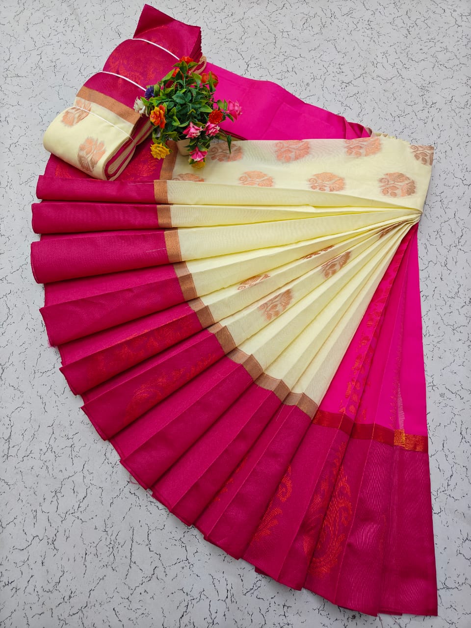 Uppada Kotanji Contrast Border Silk Cotton Sarees